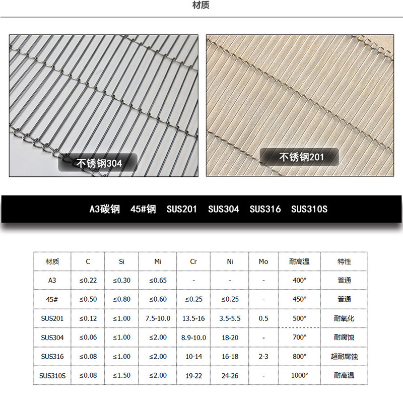 主要采用不銹鋼201、不銹鋼304、不銹鋼316、不銹鋼 1Cr18Ni9Ti特等材質(zhì)不銹鋼絲制作。