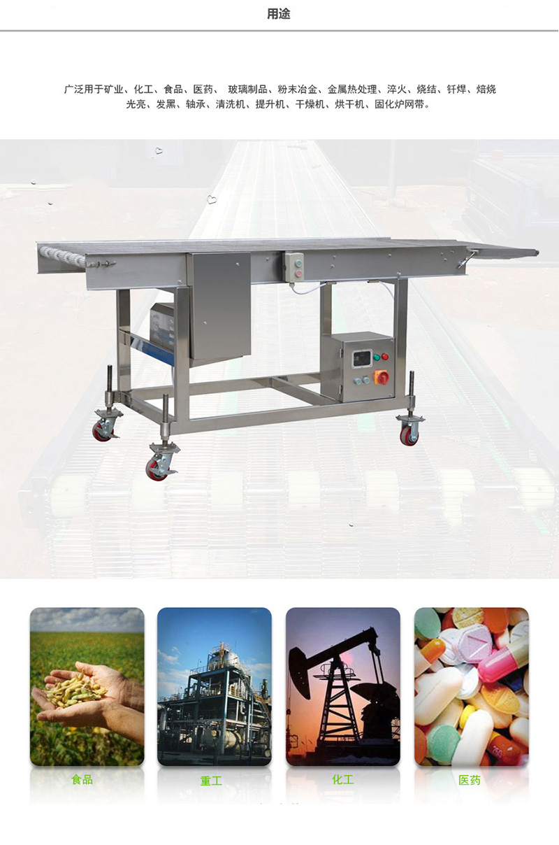 鏈條輸送帶、螺旋輸送帶、鏈桿輸送帶、人字網(wǎng)帶、雙旋網(wǎng)帶、眼鏡網(wǎng)帶、不銹鋼篩網(wǎng)、乙字網(wǎng)帶